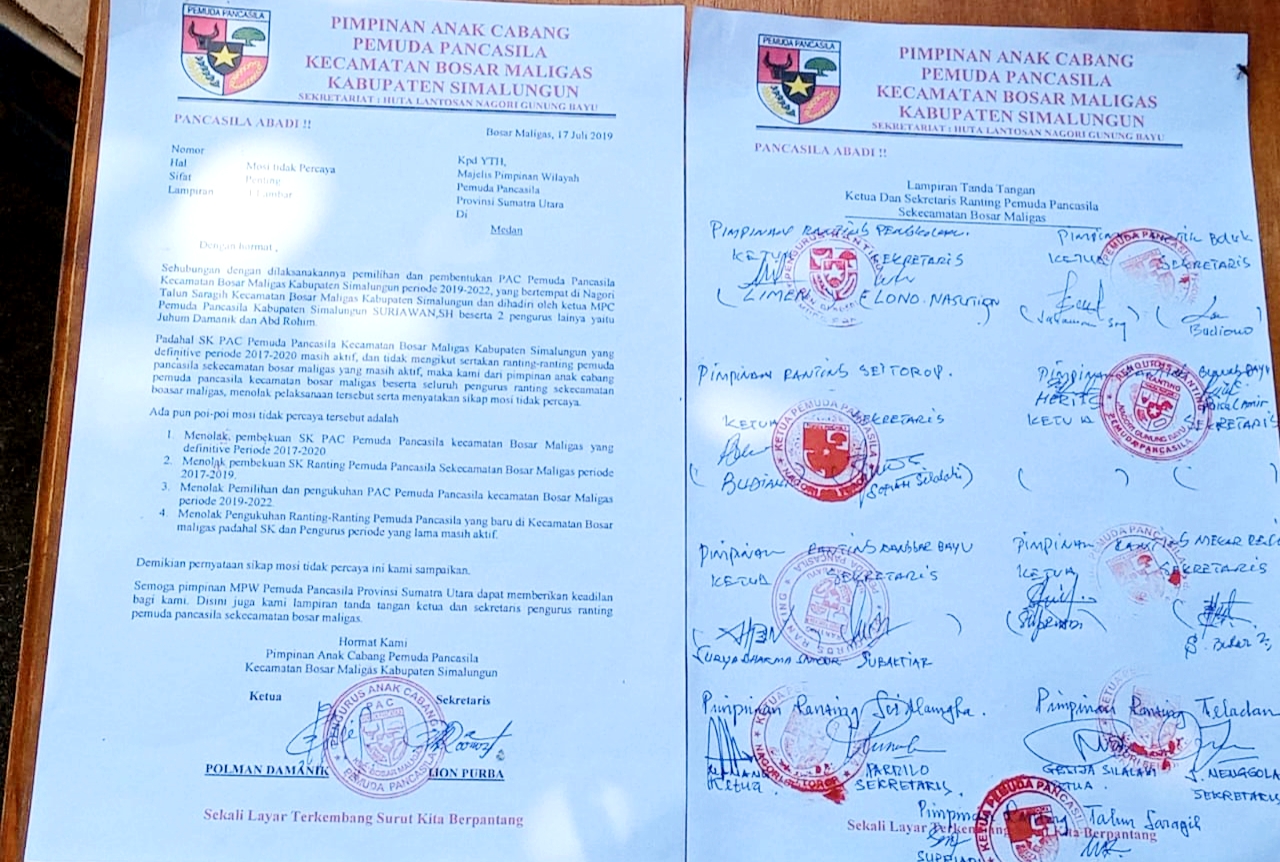 “Untuk itu, kami segenap Pimpinan Anak Cabang dan seluruh Pimpinan Ranting Kecamatan Bosar Maligas menolak keputusan yang diambil secara sepihak oleh MPC terhadap kami,” tegas Polman.