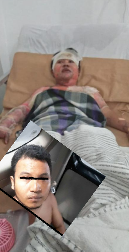 Korban yang dibakar suaminya saat mendapat perawatan medis di rsu dan tersangka pelaku pembakaran. |