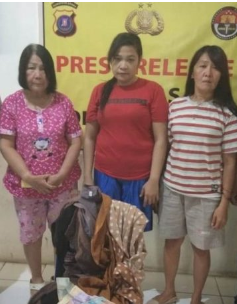 Ketiga wanita tersebut yakni AT (65) warga Kelurahan Martubung, Kecamatan Medan, Labuhan Medan, kemudian R (32) warga Bandar Setia Gang Setia, Kecamatan Percut Sei Tuan, Medan dan RH (48) warga jalan Medan Tembung, Pasar X, Kecamatan Bandar Khalipah, Medan.