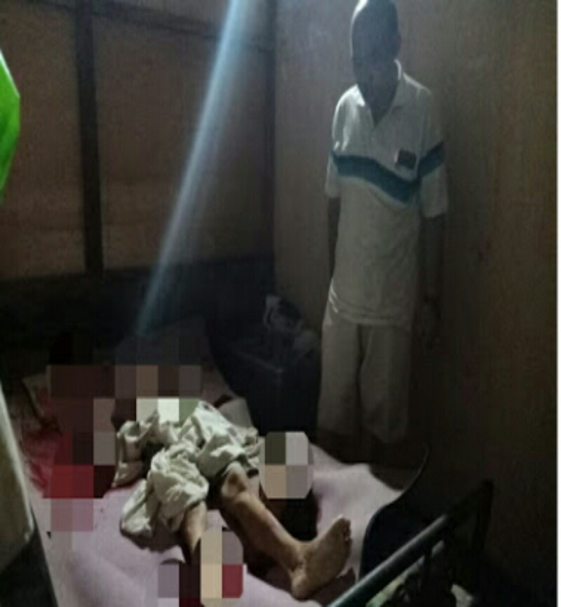 Jenazah korban yang tewas dipenggal anaknya di Nias saat dievakuasi. |