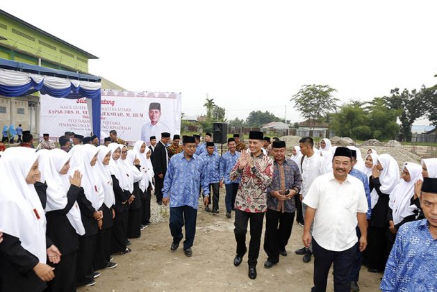 TASLABNEWS, MEDAN – Wakil Gubernur Sumatera Utara (Wagub Sumut) Musa Rajekshah meresmikan pembangunan Gedung Khadijah di Pesantren Ar-Raudlatul Hasanah, Jalan Setia Budi, Medan, Jumat (5/7). Hal itu ditandai dengan peletakan batu pertama Wagub Sumut.