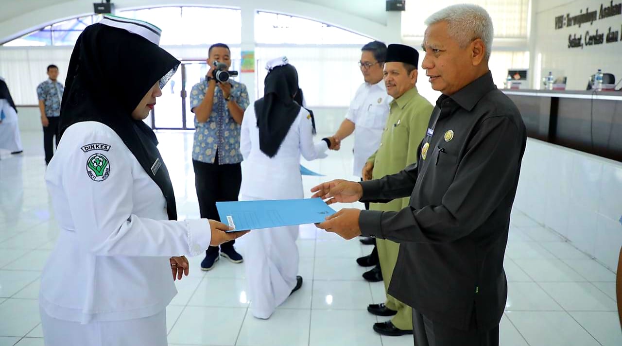 Penyerahan petikan Surat Keputusan pengangkatan para tenaga kesehatan tersebut dilakukan di Aula Melati Kantor Bupati Asahan, Kamis (22/08/2019).