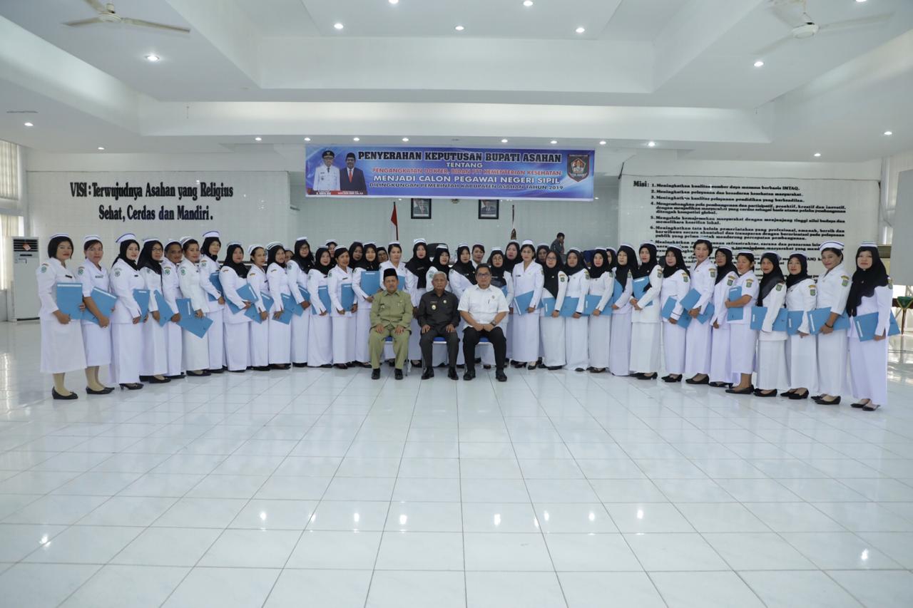 TASLABNEWS, ASAHAN – Sebanyak 42 tenaga kesehatan dari pegawai tidak tetap (PTT) Kementerian Kesehatan RI diangkat menjadi Calon Pegawai Negeri Sipil (CPNS) di Lingkungan Pemerintah Kabupaten Asahan Tahun 2019.