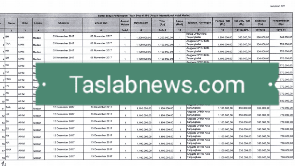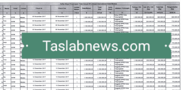 TASLABNEWS, TANJUNGBALAI- Ternyata dugaan mark up dan penginapan fiktif anggota DPRD Tanjungbalai bukan hanya terjadi di Grand City Hall Medan saja. Tapi juga terjadi di Assean Internasional Hotel Medan.