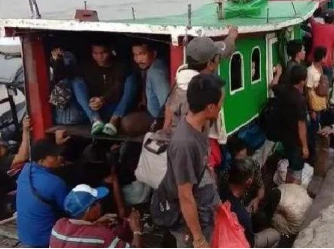 Para TKI diangkut naik kapal motor tanpa nama di perairan Asahan.