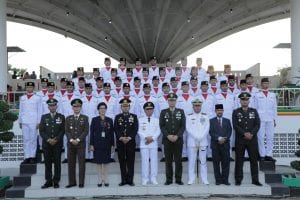 Komandan Kelompok Fery Prasetyo, Pengulur Bendera Priya Ade Afrianta Sirait dan Penggerek Bendera Wahyu Diantoro. (Syaf)