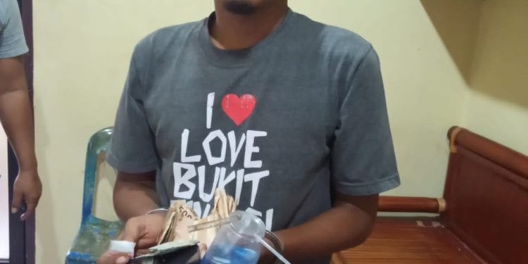 Tim menemukan tersangka sedang duduk di lantai di dalam kamar sambil membungkus sabu ke dalam plastik kecil selanjutnya dilakukan penggeledahan dan menemukan narkotika jenis sabu sebanyak 3 bungkus terletak di lantai dan alat isap sabu dan tersangka mengakui bahwa sabu tersebut miliknya sendiri.