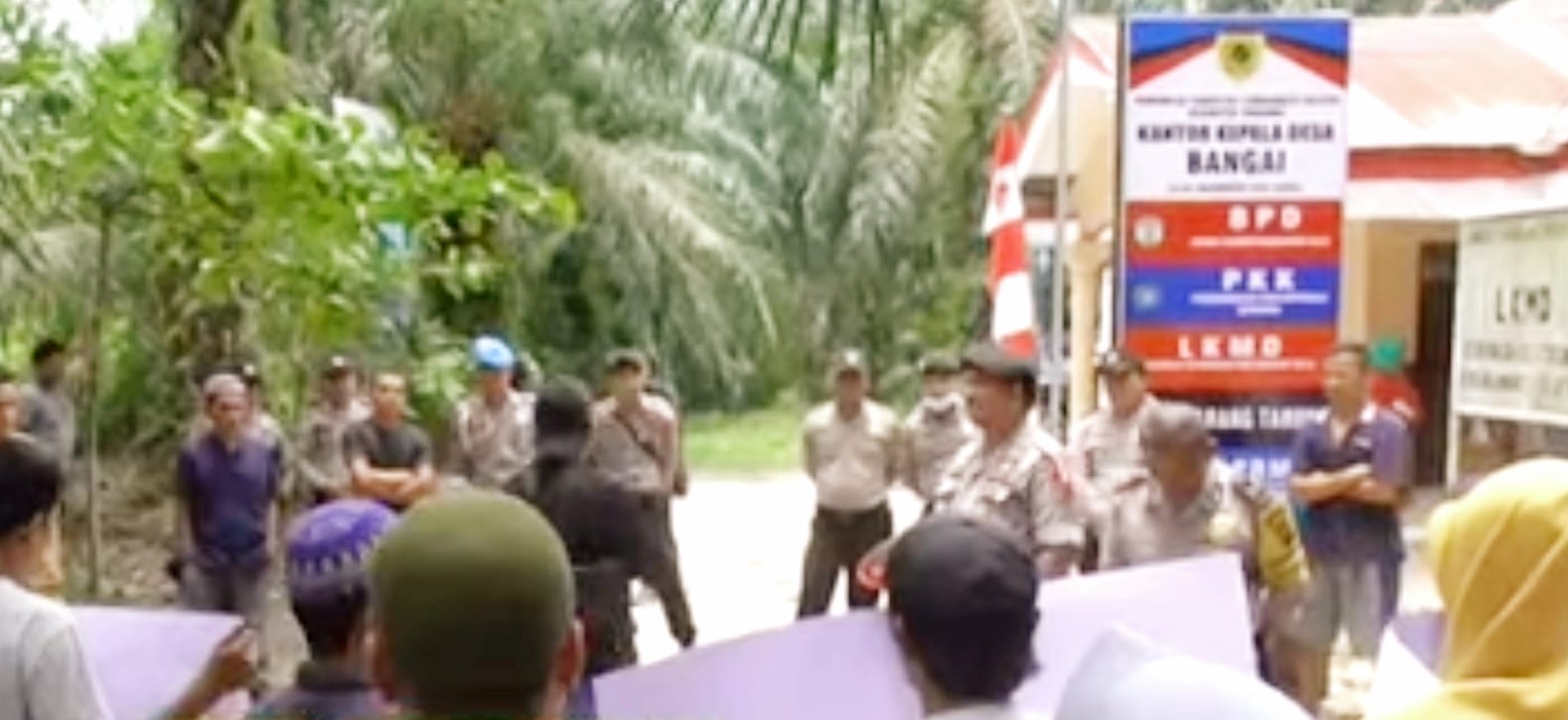Merespons hal tersebut, masyarakat setempat dan mahasiswa berunjuk rasa di halaman Kantor Kepala Desa Bangai.