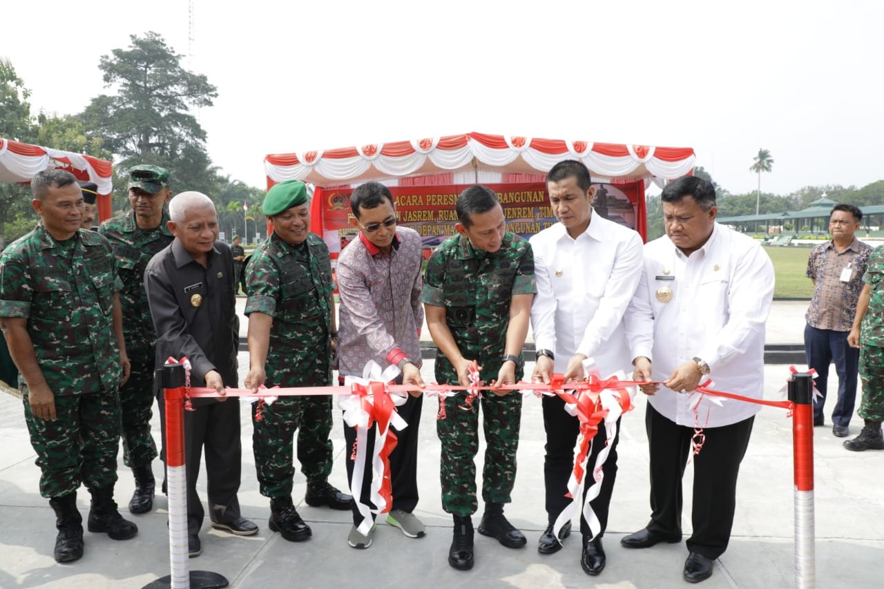 Selanjutnya Panglima melakukan Pengguntingan Pita Peresmian Gedung Kantor Jasrem, Ruang Fitnes dan Penandatangan Prasasti.