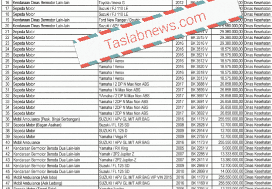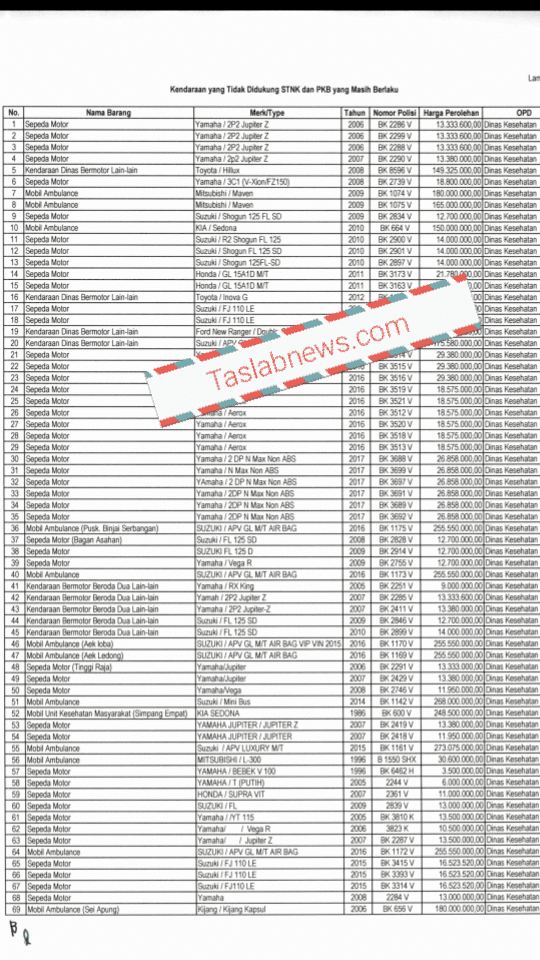 TASLABNEWS, ASAHAN-Tidak dibayarnya pajak 100 kendaraan di Dinas Kesehatan merupakan contoh buruk yang dipertontonkan Kepala Dinas Kesehatan dr Aris kepada masyarakat Asahan.
