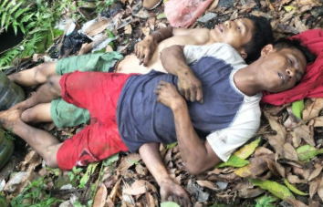Saat ditemukan, kedua jasad tergeletak saling tindih di lahan kosong. Seorang mengenakan kaos dan seorang bertelanjang dada.