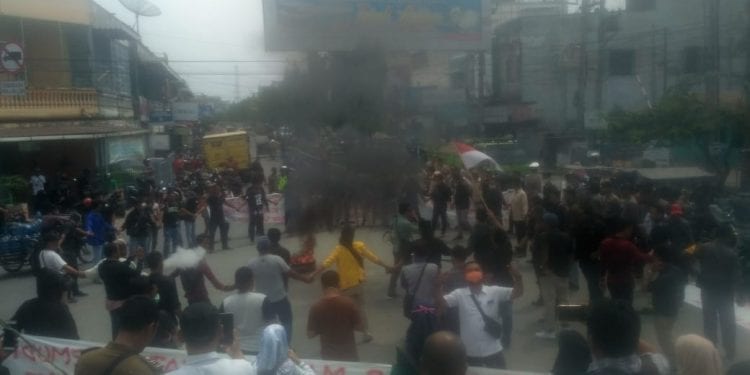 Dari pantauan, sebelum melakukan aksi pengunjuk rasa berkumpul di Jalan pahlawan kemudian bergerak kebundaran PLN di jalan Sudirman.