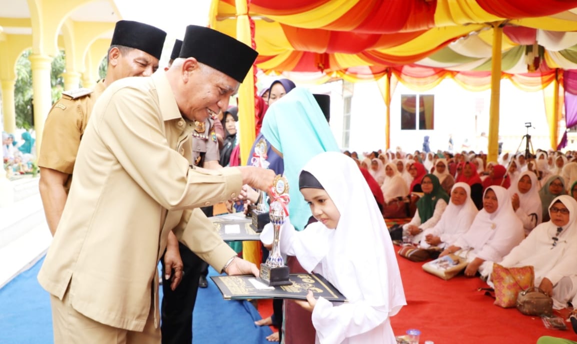 Sebelum memberikan bimbingan dan arahannya, Bupati Asahan menyerahkan Surat Keterangan Tanah (SKT) Gratis kepada 51 orang, dan menyerahkan hadiah kepada pemenang lomba Festival Anak Sholeh se-Kecamatan Pulau Rakyat, yang diserahkan secara simbolis.