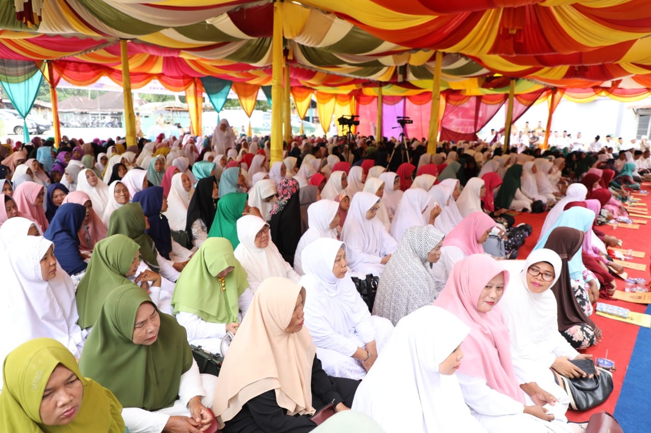TASLABNEWS, ASAHAN – Bupati Asahan, H Surya, BSc Bersama dengan Ketua TP. PKK Kab. Asahan Ny Hj Titiek Sugiharti hadiri Pengajian Akbar di Mesjid Al Amin Kecamatan Pulau Rakyat, Senin (30/9/2019).