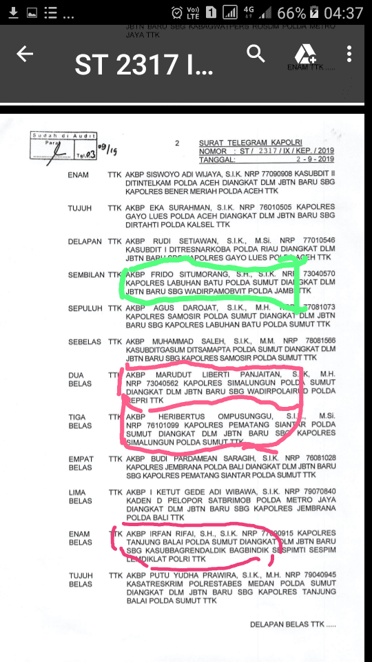 TASLABNEWS, MEDAN-Beredar di grup whatsApp surat tugas pemindahan Kapolres Tanjungbalai AKBP