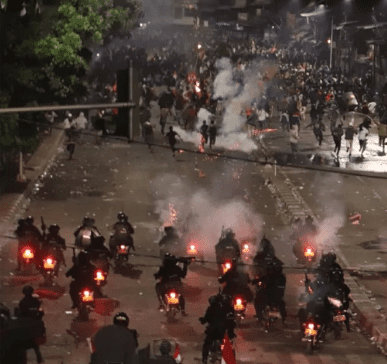 Polisi membalas dengan menembakan gas air mata beruntun sehingga memecah konsentrasi massa masuk ke Tol Dalam Kota yang mengarah ke Grogol dan Senayan.