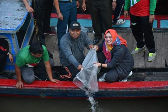 TASLABNEWS, TANJUNGBALAI-Sebanyak 20.000 ekor benih ikan nila, 6.000 benih ikan gurame, 9.870 ekor benih ikan patin dan 7.200 ekor benih ikan baung dilepas Wali Kota Tanjungbalai H M Syahrial didampingi Ketua TP-PKK Hj Sri Silvisa Novita.