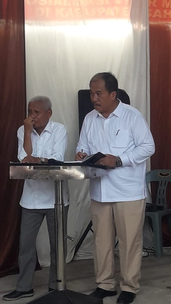 Ketua Panitia penjaringan Balon Bupati dan Wakil Asahan dari Partai Gerindra Bambang Rusmanto menyambut kedatangan pasangan Balon Bupati Asahan 2020-2024 pertama yang mengembalikan firmulir pendaftaran ke Kantor Gerindra jalan Batu Mutiara No 2 Sidodadi Kisaran, Minggu (27/10/2019).