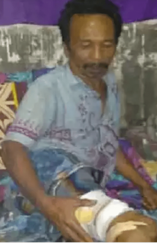 Tiba-tiba saja, dia dikagetkan dengan gigitan buaya di bagian paha kaki kanannya.