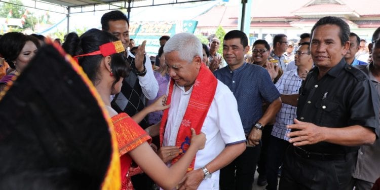 TASLABNEWS, ASAHAN-Bupati Asahan H Surya BSc menghadiri pesta Pembangunan Serbaguna dan Ulang Tahun ke-65 HKBP Desa Gajah, Resort Desa Gajah Distrik XIII Asahan Labuhanbatu.