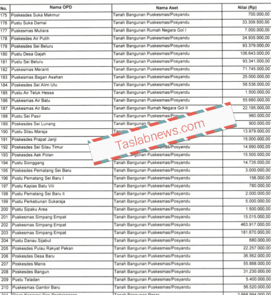TASLABNEWS, ASAHAN-Ternyata selain 14 pusat kesehatan masyarakat (puskesmas) pembantu (pustu) dan 13 Pos Kesehatan Masyarakat Desa (Poskesdes), ada 7 Puskesmas di jajaran Dinkes Asahan yang tidak memiliki surat bukti kepemilikan tanah.