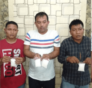 Ketika dilakukan penggeledahan, dari ketiga tersangka tersebut, polisi menemukan barang bukti berupa bungkusan plastik kresek warna hijau dari tangan Handri. Setelah dibuka, ternyata berisi 4 paket besar sabu yang dibalut jilbab warna putih.