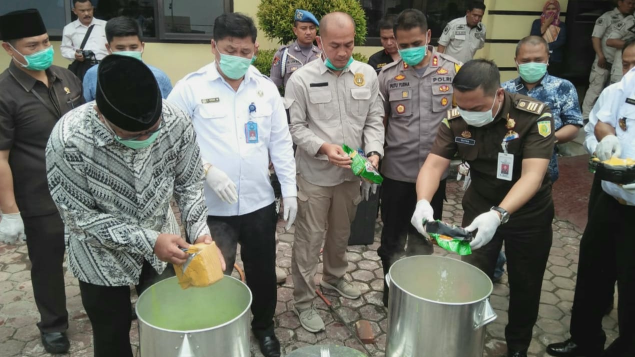 “Pemusnahan terhadap sebanyak 18.880,43 gram sabu dan 9.840 butir ekstasi dari 4 kegiatan atau laporan polisi dengan 5 orang tersangka, membuktikan peredaran dan penyalahgunaan Narkoba di Kota Tanjungbalai ini masih tinggi dan cenderung meningkat,” ujar Putu Yudha.