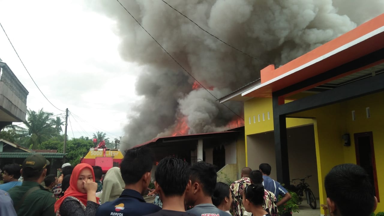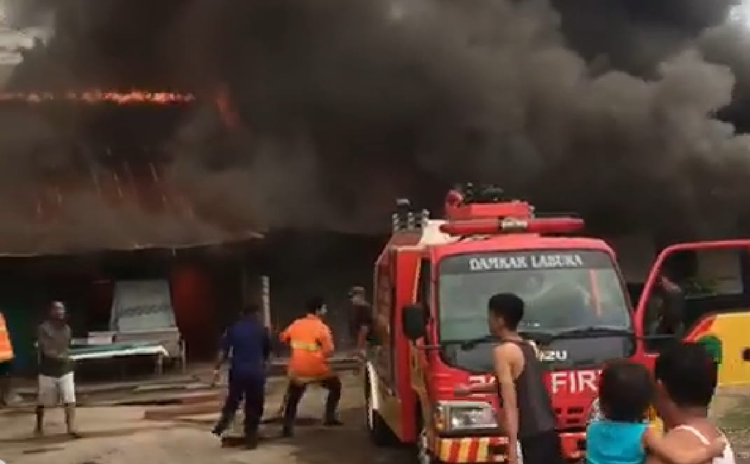 TASLABNEWS, LABURA –Sebanyak 7 rumah permanen dan semi permanen milik warga di lingkungan II, Kelurahan Merbau, Kecamatan Merbau, Kabupaten Labuhanbatu Utara (Labura), dilalap si jago merah, Kamis (31/10/2019), sekira pukul 08.00 WIB. Tidak ada korban jiwa dalam peristiwa kebakaran itu. Namun kerugian ditaksir sekitar Rp1 Miliar.