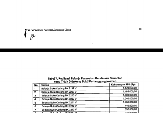 Rp309 Biaya Perawatan Kendaraan Dinas di Sekwan Asahan Tak Sesuai Ketentuan