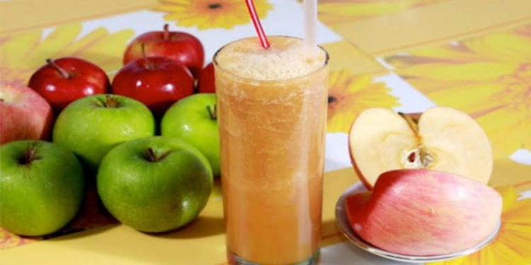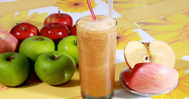 Masukkan juga jus buah apel dan blender lagi sampai tercampur merata.