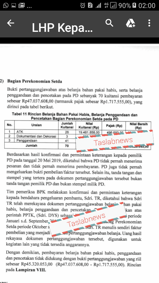Itu sesuai hasil temuan Badan Pemeriksa Keuangan (BPK) terhadap Laporan Keuangan Pemkot Tanjungbalai TA 2018 Nomor: 66.C/LHP/LVIII.MDN/06/2019 yang dimiliki redaksi taslabnews.com.
