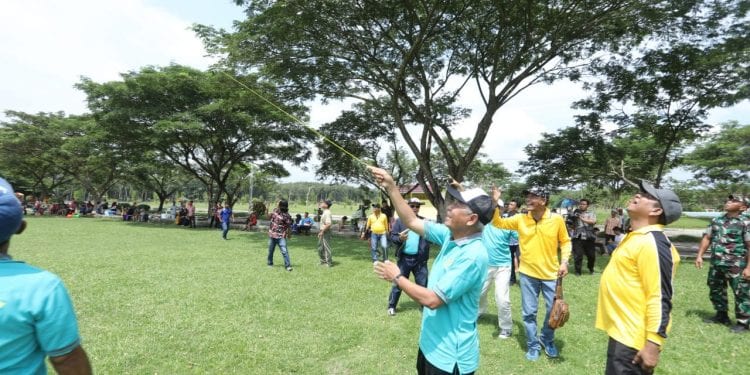 Acara dibuka oleh Bupati Asahan bersama tamu undangan menaikan layang-layang menandakan lomba layang-layang piala Bupati Asahan tahun 2019 telah dibuka. (syaf)