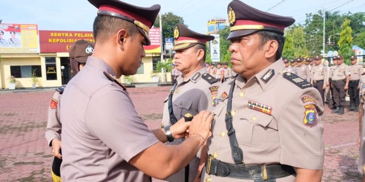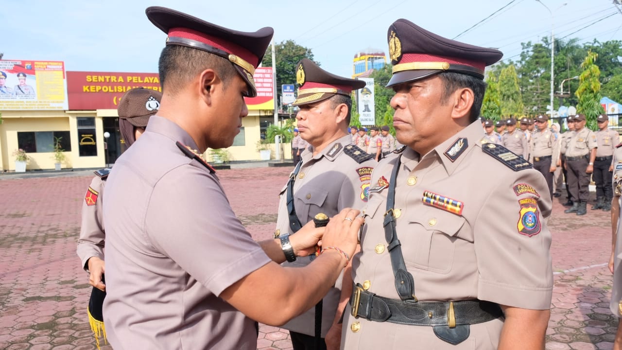 TASLABNEWS, TANJUNGBALAI – Kapolres Tanjungbalai, AKBP Putu Yudha Prawira,SIK,MH memimpin upacara serah terima jabatan (Sertijab) 3 pejabat utama (PJU) Polres Tanjungbalai dan 1 Kapolsek di halaman Mapolres Tanjungbalai, Jumat (1/11).