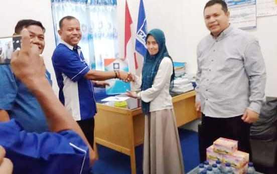TASLABNEWS, ASAHAN –Pasangan Bakal Calon (Balon) Bupati dan Wakil Bupati Asahan, Rosmansyah dan Winda Fitrika menyerahkan berkas pendaftaran Balon Bupati dan Wakil Bupati di kantor DPD PAN Asahan, Jalan Melati Kelurahan Kisaran Naga, Kabupaten Asahan, Selasa (19/11/2019).