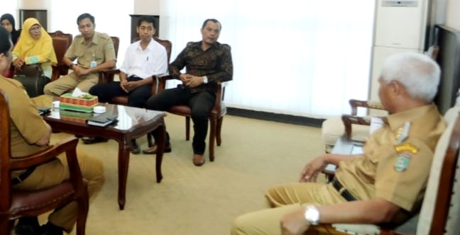 TASLABNEWS, ASAHAN –Bertempat di ruang kerjanya, Bupati Asahan, H Surya BSc didampingi Asisten III, Kadis Kominfo, Kaban Kesbang dan Kabag Hukum menerima audensi Wahyu Adi beserta keluarga, Senin (2/12/2019).