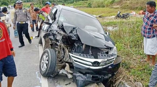 TASLABNEWS, SAMOSIR – Diduga takut terlambat tiba di sekolah untuk mengikuti ujian, Hotman Napitu (17) memacu sepedamotornya dengan kecepatan tinggi. Tiba di jalan di Km 01, Desa Unjur Ambarita, Kecamatan Simanindo, Kabupaten Samosir, pelajar di SMA Simanindo bertabrakan dengan mobil Avanza. Hotman tewas di tempat kejadian, Rabu (4/12/2019).