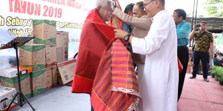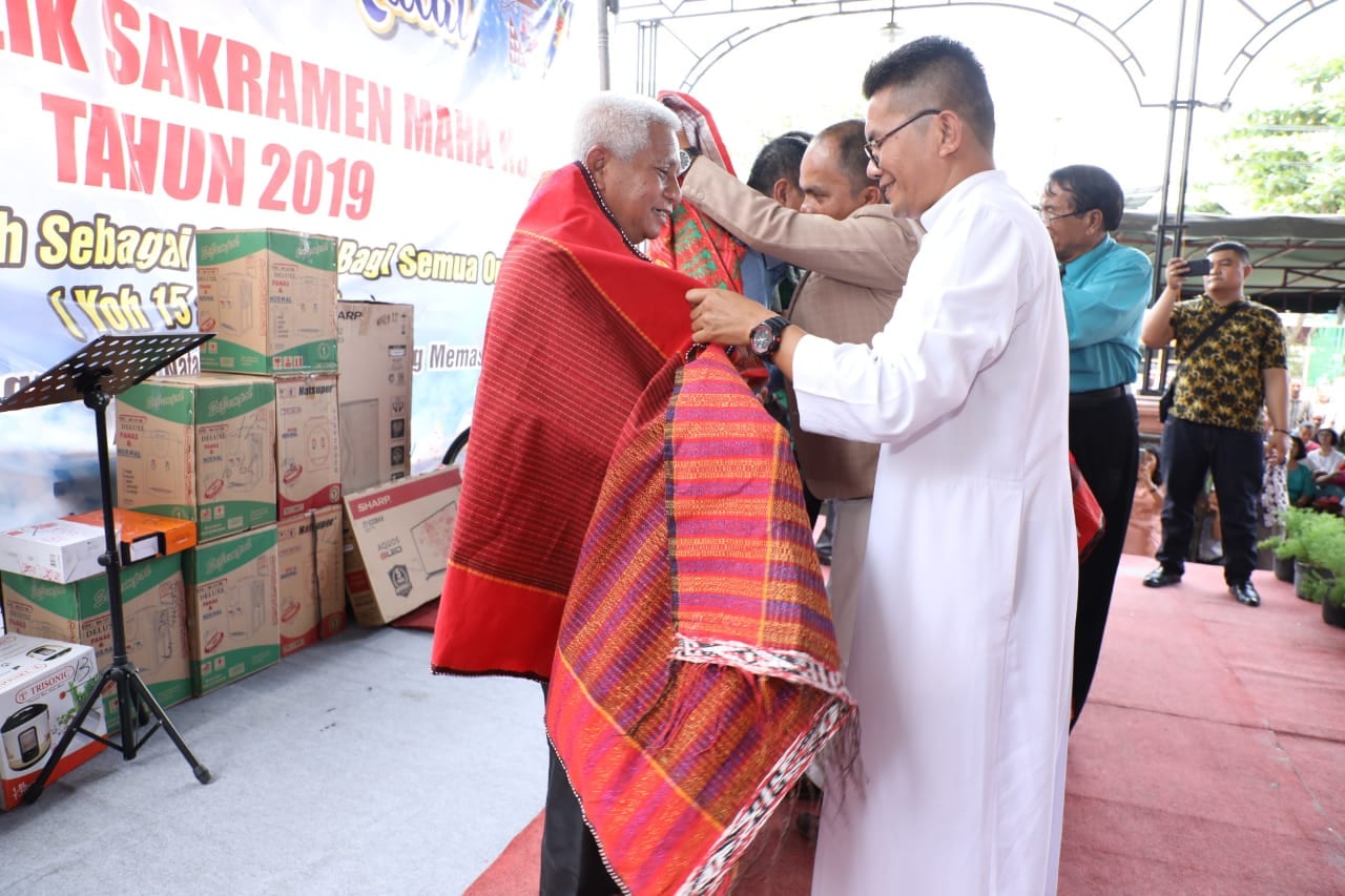 Kegiatan tersebut diakhiri dengan penyerahan ulos oleh Jemaat Gereja Katolik Sakramen Maha Kudus Kisaran kepada Bupati Asahan, Dandim 0208 Asahan, Kapolres Asahan dan Sekretaris Daerah Asahan sebagai tanda cinta dan persaudaraan para Jemaat Gereja Katolik Sakramen Maha Kudus Kisaran kepada Forkopimda Asahan. (Syaf)