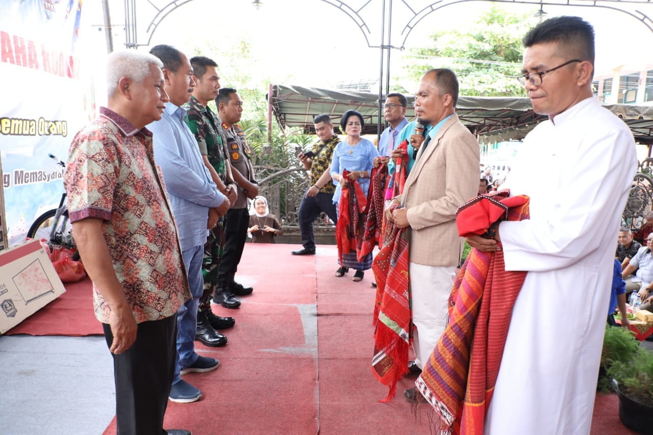 TASLABNEWS, ASAHAN-Bupati Asahan Surya BSc, Kapolres AKBP Faisal Napitupulu, Dandim 0208 Asahan Letkol Inf. Sri Marantika Beruh dan Sekda Taufik ZA diulosi oleh jamaat gereja Katolik Paroke.