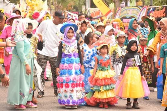Ada yang menarik pawai budaya kali ini, para peserta dari TP-PKK Tanjungbalai dan Para Siswa mengenakan pakaian bahan daur ulang. Hal ini sebagai bentuk kepedulian dan komitmen dari program Pemkot Tanjungbalai dalam mengurangi penggunaan sampah plastik.