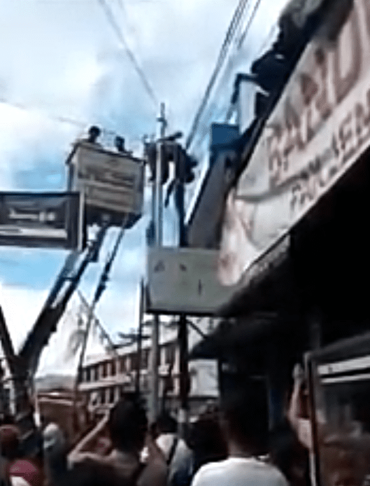 Pantauan wartawan saat dievakuasi jasad korban terlihat kaku di atas sebuah tiang listrik dengan kondisi masih terikat tali pengaman. Evakuasi sendiri berlangsung kurang lebih satu jam.