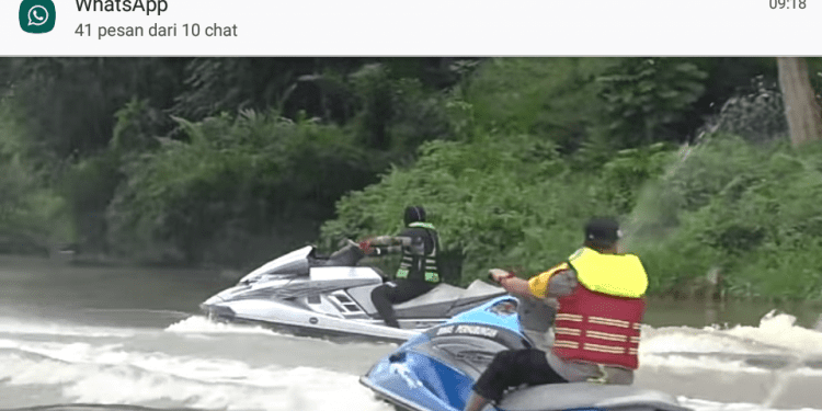 Kegiatan ini menjadi tintinan warga. Ratusan warga tampwk antusias menyaksikan permaina jet sky yang dilakukan para pejabat tersebut.