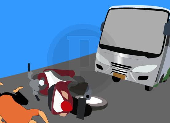 Akibatnya sepedamotor korban hilang kendali dan terpental ke sisi kiri, sementara tubuh korban Riken, terpental ke posisi kanan badan jalan.