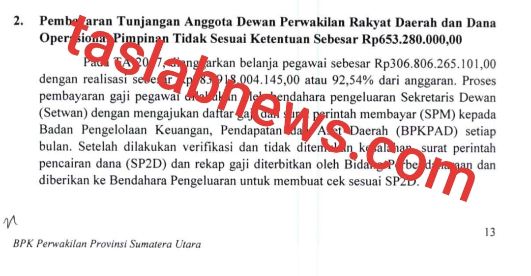 Diuraikan Ridho, pada LHP BPK RI TA 2018 dan 2019 ada temuan pembayaran tunjangan anggota DPRD dan Dana Operasional (DO) yang tidak sesuai ketentuan. Dimana pada TA 2017 sebesar Rp653.280.000 dan pada TA 2018 sebesar Rp659.950.000.