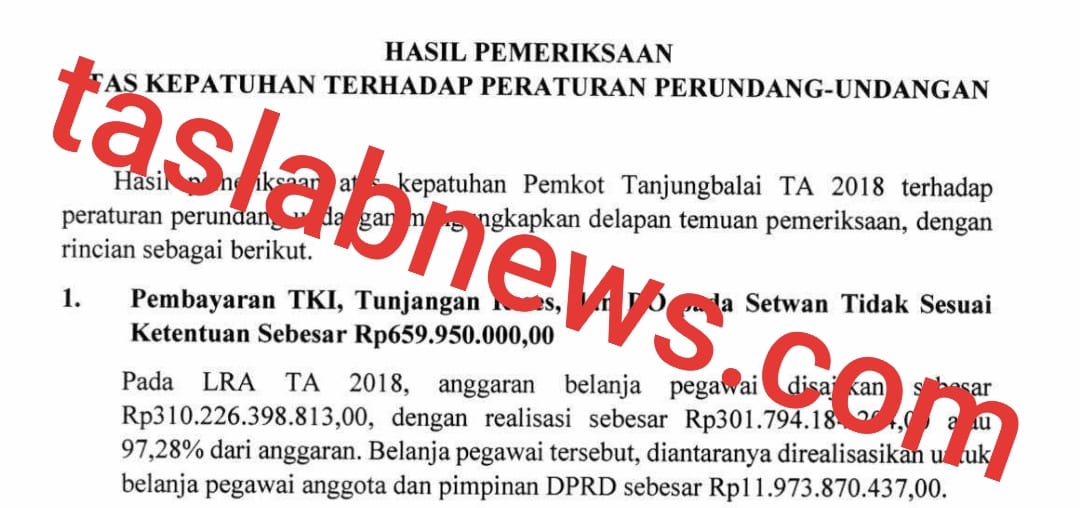 TASLABNEWS, TANJUNGBALAI – Terkait adanya temuan Badan Pemeriksa Keuangan (BPK) RI pada keuangan Sekretariat DPRD (Setwan)Tanjungbalai tahun anggaran (TA) 2017 dan 2018 yang berpotensi merugikan keuangan Negara hingga Miliaran Rupiah, Ketua Forum Mahasiswa dan Pelajar (FORMAP) Tanjungbalai meminta Kejaksaan Tinggi Sumatera Utara (Kejatisu) memeriksa Sekretaris DPRD (Sekwan) Kota Tanjungbalai.