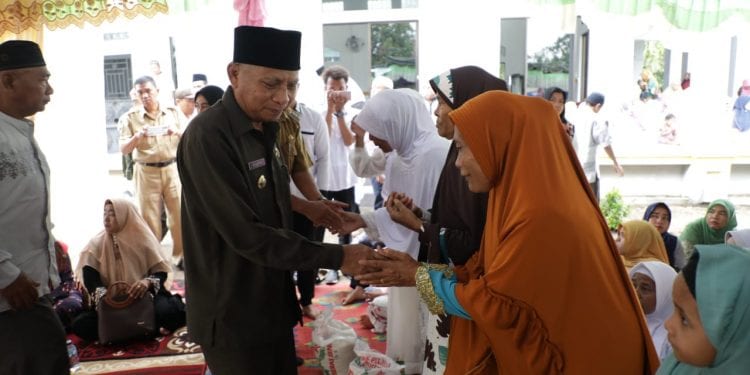 Sebelum menyampaikan sambutan, Bupati Asahan menyerahkan santunaan kepada 36 orang Anak Yatim dan 10 orang Kaum Dhuafa.