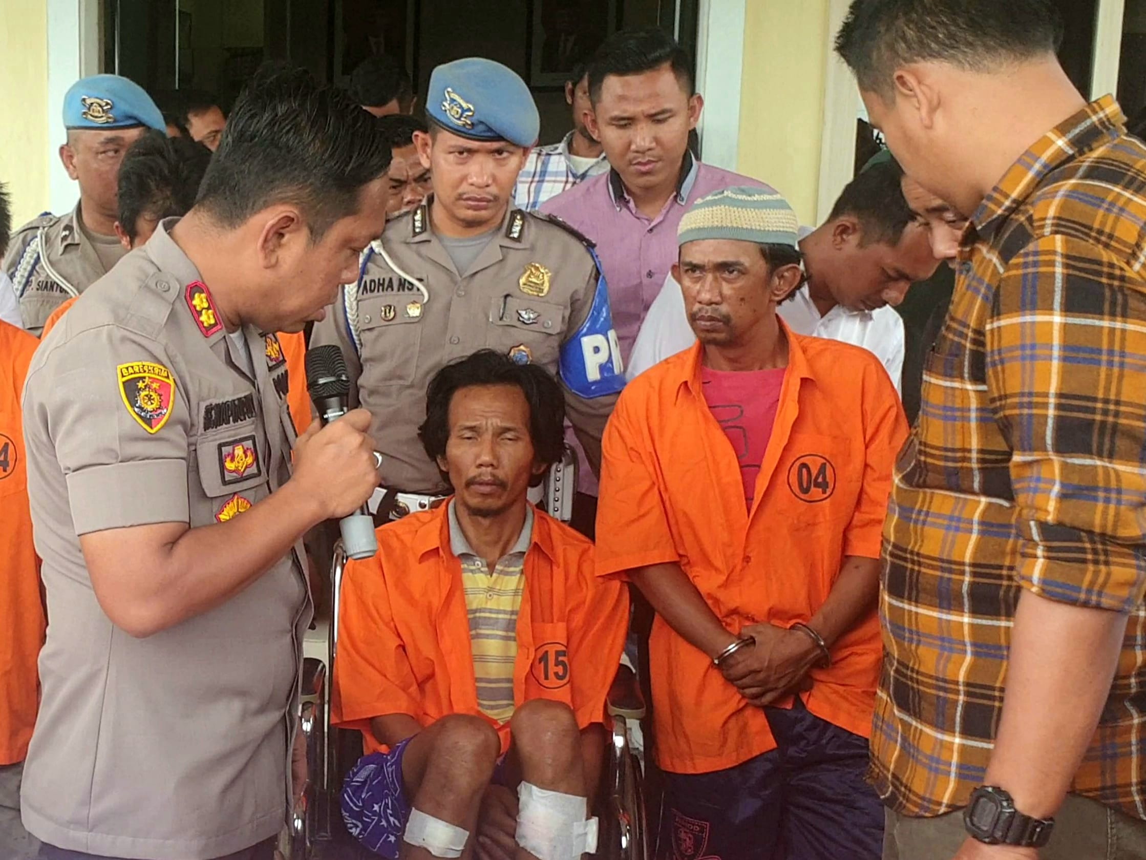 Kapolres Asahan, AKBP Faisal F Napitupulu didampingi Kasat Reskrim AKP Ricky Pripurna Atmaja, saat pers rilis kasus di Mapolres Asahan, Kamis (23/1/2020), menjelaskan tersangka Harun Nasution alias Harun (40), warga Jalan SM Raja, Kisaran, yang merupakan residivis bertindak sebagai eksekutor.