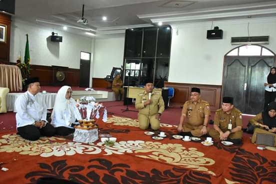 TASLABNEWS, TANJUNGBALAI– Wali Kota Tanjungbalai HM Syahrial SH MH bersama OPD mengupah-upah Wakil Wali Kota Ismail dan Hj Syahrifah yang akan melaksanakan Umroh ketanah suci. Upah upah dilaksanakan di Aula I Balai Kota Tanjungbalai (Senin, 6/1/2020)
