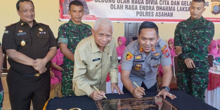 TASLABNEWS, ASAHAN – Kapolres Asahan AKBP Faisal F Napitupulu SIK MH beserta Forkopimda Kabupaten Asahan, Senin (24/02/2020) meresmikan Gedung Olahraga Divia Cita dan Gelanggang Olahraga Endra Dharmalaksana yang berada di halaman Polres Asahan.