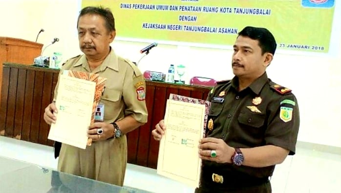 Mantan Kadis PUPR, Mulkan saat menandatangani MOU dengan pihak Kejari, tahun 2018 lalu.