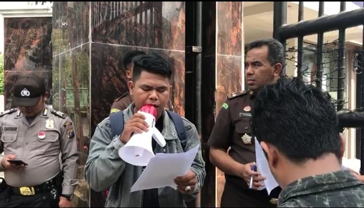 TASLABNEWS, MEDAN – Belasan Mahasiswa yang tergabung dalam Gerakan Mahasiswa Peduli Sumatera Utara (GEMA-PESU) melakukan aksi unjuk rasa didepan kantor Kejaksaan Tinggi Sumatera Utara, Jl. Jenderal Besar AH Nasution No 1 C Pangkalan Masyhur Kecamatan Medan Johor, Kota Medan, Kamis (27/02/2020) sekitar pukul 14.00 Wib.